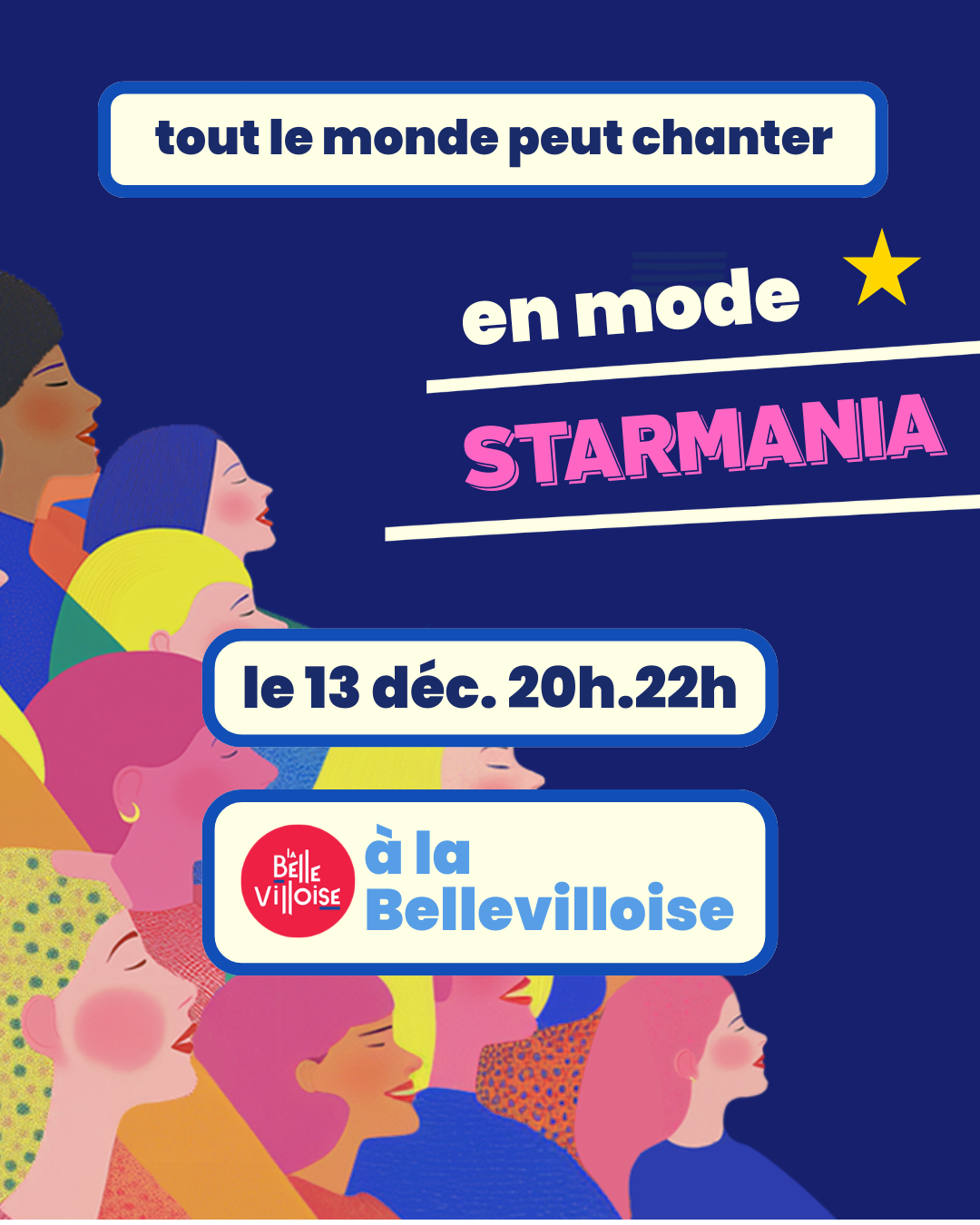 Pendant deux heures, accompagnés par un chef de choeur de folie, nous allons chanter les plus grands classiques de Starmania : Le monde est stone, les Uns contre les autres, SOS d’un terrien en détresse, Quand on arrive en ville etc.